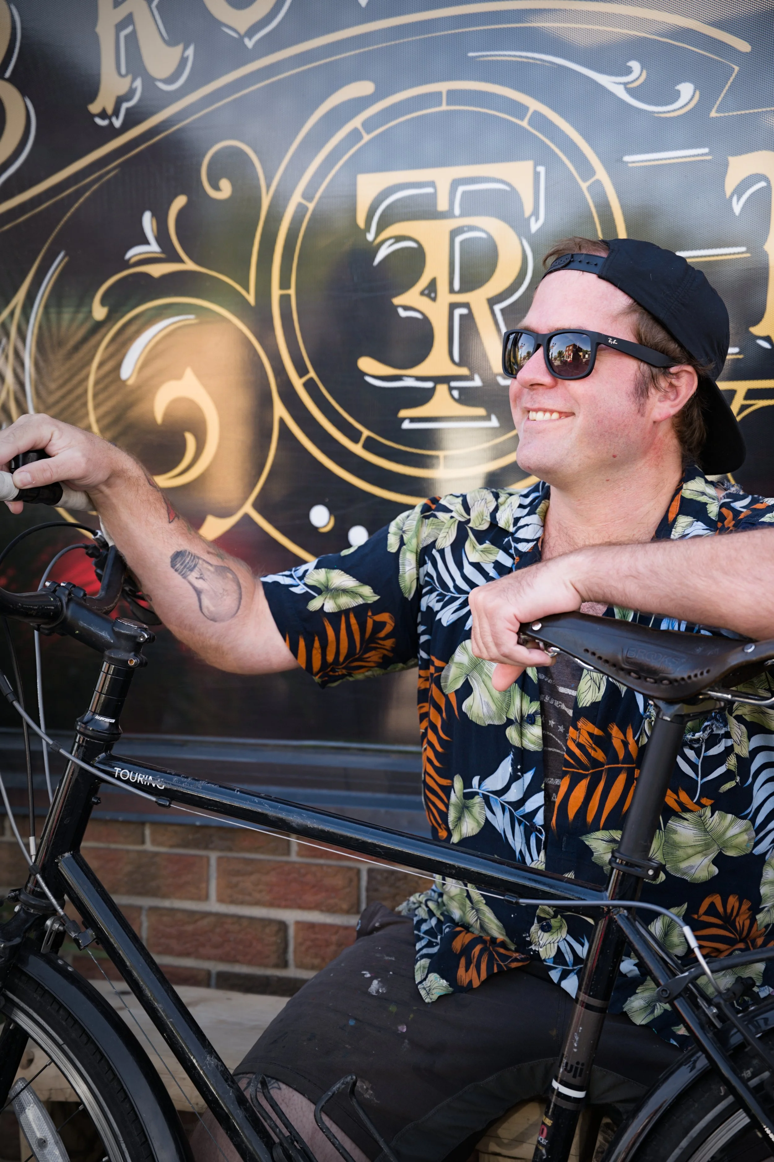 Outside the studio, you’ll find him on a long-distance bike ride, out on a disc golf course, or painting a mural.